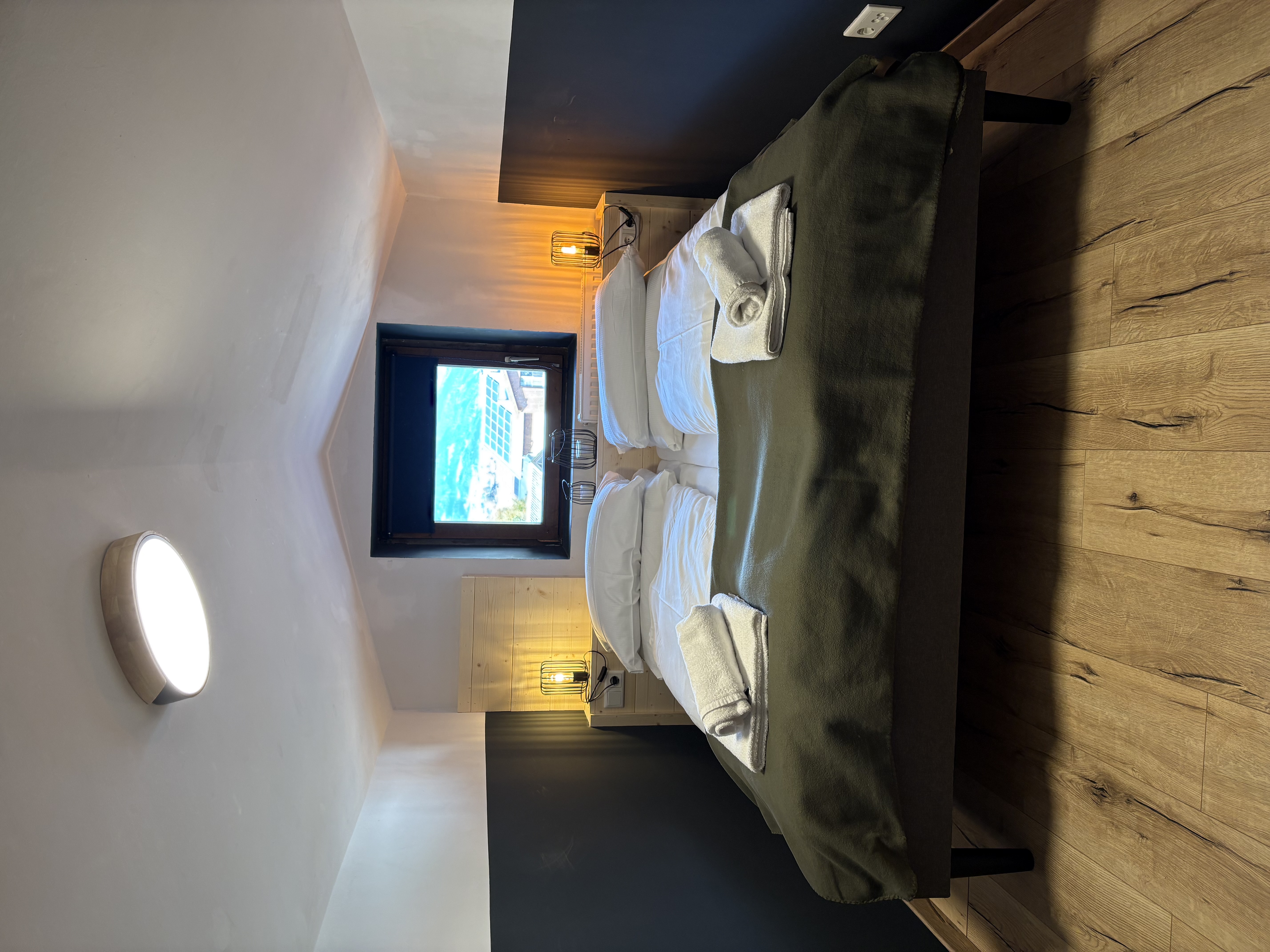 Deze vakantiewoning is het penthouse van Chalet Sonnentanz en is geschikt voor maximaal 9 personen, is gelegen op de topetage en bestaat uit 3 slaapkamers. Slaapkamer 1 met tweepersoonsbed, slaapkamer 2 met tweepersoonsbed en stapelbed en slaapkamer 3 met tweepersoonsbed en extra bed. Verder zijn er 2 badkamers, waarvan één met ligbad, douche en toilet, een toilet en een ruime woonkamer met open keuken. In de woonkamer vindt u een zithoek met TV en DVD-speler. Grenzend aan de open keuken bevindt zich de eethoek met plaats voor 9 personen. De moderne keuken is voorzien van alle gemakken, zoals een vaatwasser, kookplaat, oven, koelkast met vriesvak, filter koffiezetapparaat, Nespresso en waterkoker. Ook de keukeninventaris is bijzonder compleet.